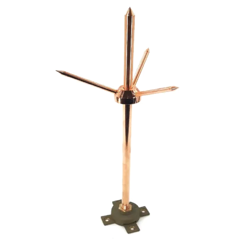 Taper pointed air rods prowide the strike point in a lghoning probaction systm. Thay can be ued with or without muEipoints, however research indicates mullipk points with taper rods offer more effectiwity. Standards NFPA 780 / UL 467